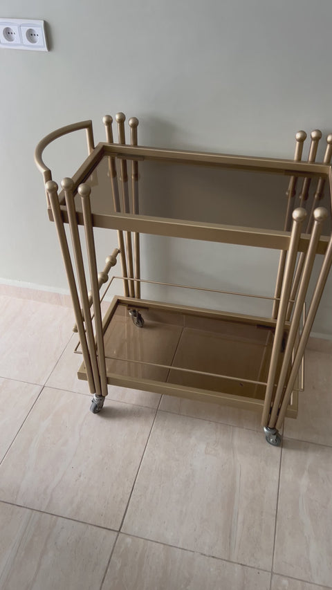 👑 Chariot ROYAL – 2 plateaux en verre bronze & structure dorée