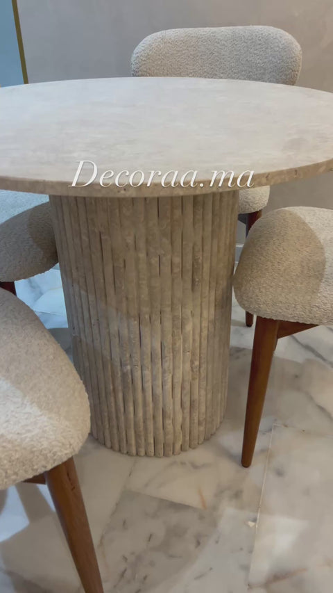 Table à manger ronde – Travertin Volubilis 110 cm + 4 chaises